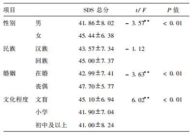 | 表 1 宁夏农村高血压病人抑郁自评量表(SDS)总分比较 |