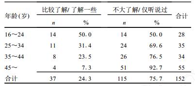 | 表 1 不同年龄组人群对转基因食品的了解程度 |