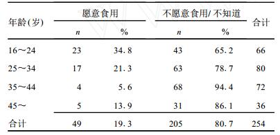 | 表 2 不同年龄组对转基因食品的接受情况 |