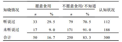 | 表 3 不同认知状况的受访者对转基因食品的接受情况 |