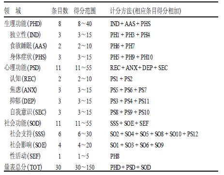 | 表 1 QLICD-GM (V1.0) 的各项领域及总量表计分 (粗分) 方法 |