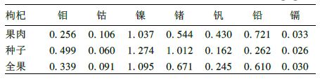 | 表 1 枸杞子果肉、种子、全果中微量元素的含量(μg/g)) |