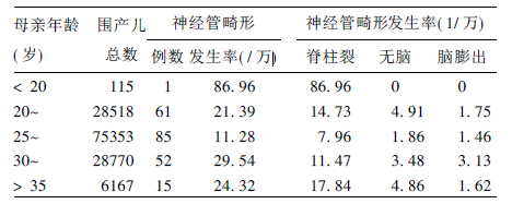| 表 3 不同年龄产母的各种神经管畸形发生率情况 |