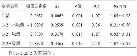 | 表 2 IL-1A-889/NcoⅠ基因型与吸烟的交互作用 |