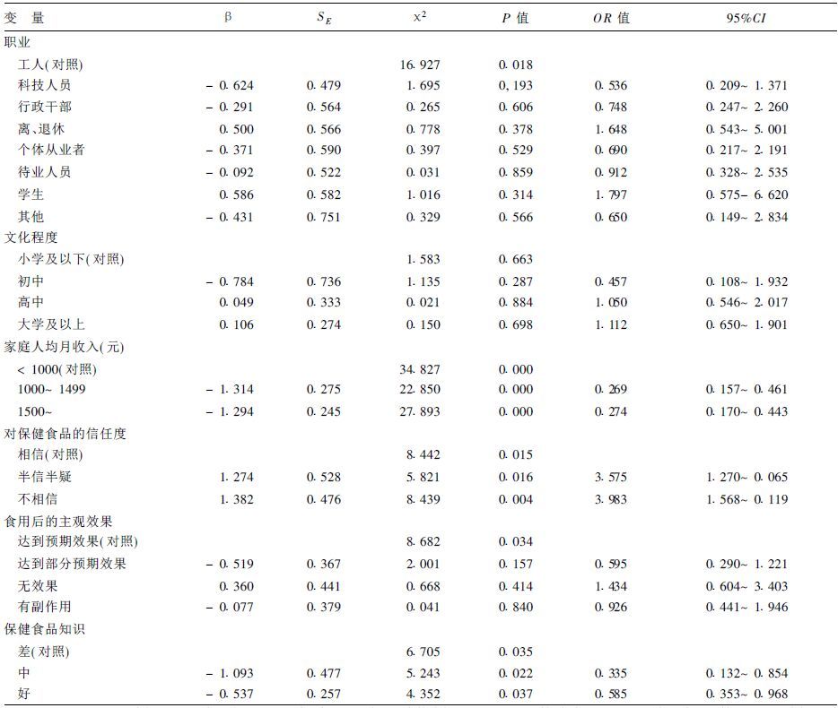 | 表 1 影响消费者保健食品消费费用的Logistic回归分析结果 |