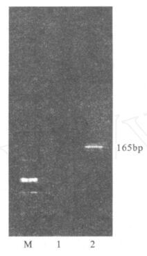 注:1 :空白对照;2 :PCR 扩增片段。 图 1 PCR扩增产物的凝胶电泳图 |