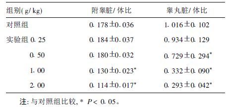表 1 DBP对大鼠睾丸和附睾脏/体比的影响(x ± s)