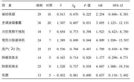 2.3 非吸烟女性肺癌因素分析(表 4)