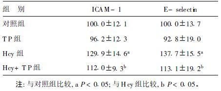 2.2 TP及Hcy对HUVEC粘附分子ICAM-1和E-selectin表达的影响(表 2) 2.2.1 TP及Hcy对HUVEC