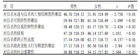 | 表 1 不同性别大学生对自杀态度各量表得分比较(x±s) |