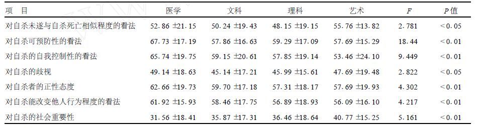 | 表 2 不同专业大学生自杀态度分量表得分比较(x±s) |