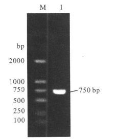 注:M:DL2000 DNA marker;1:Hp0410。 图 1 hp0410PCR扩增 |