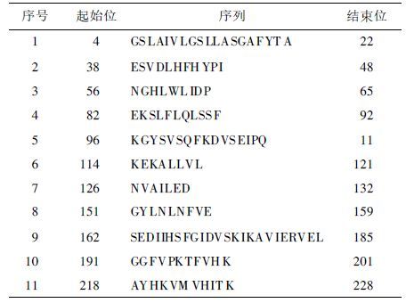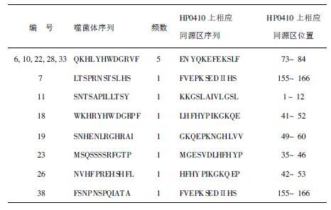 | 表 2 HP0410高抗原性肽段 |