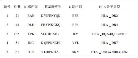 | 表 3 HP0410的HLAⅡ类分子结合结构域预测 |