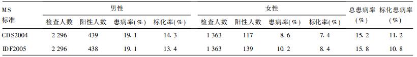 | 表 1 男、女性MS患病率与标化患病率 |