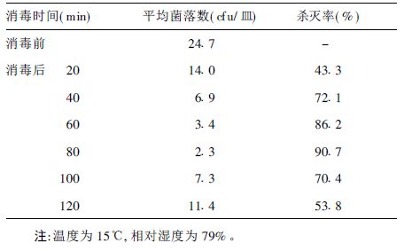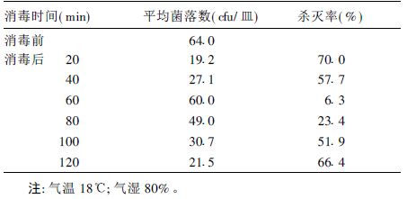 | 表 2 EOW车厢空气消毒前后不同时间菌落数与杀灭率 |