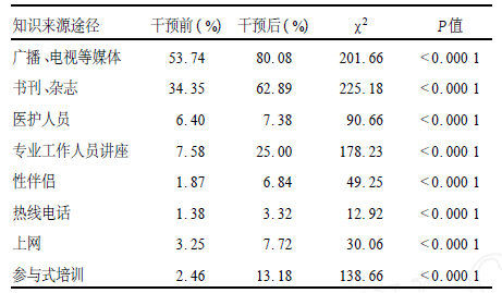 | 表 1 农协工干预前、后艾滋病知识来源途径情况比较 |