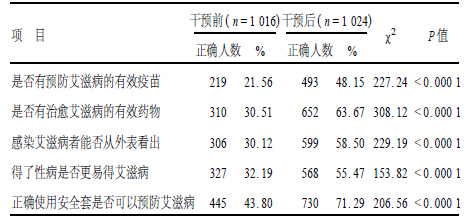 2.3 干预前后AIDS相关知识变化 (表 2)