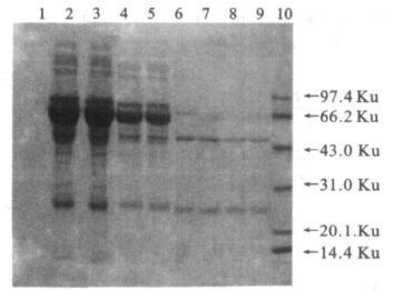 图 1 纯化和未纯化的腹水抗体SDS- PAGE 电泳 |