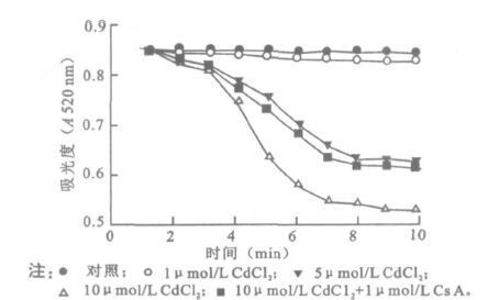 图 1 不同浓度CdCl2对MPTP开放的影响 |