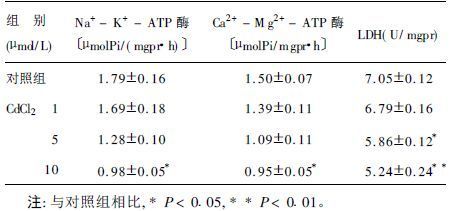 | 表 1 CdCl2对线粒体内ATP酶和LDH活性的抑制作用( x±s, n=3) |