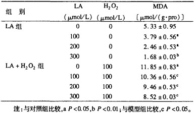 1 材料与方法 1.1 材料 1.1.1 主要仪器及试剂721型分光光度计(上海国营长江科学仪器厂); 752c-紫外可见光分光光度计(上海第三分析仪器厂)。硫辛酸(美国Sigma公司); H2O2(天津市光复精细化工研究所); 硫代巴比妥酸(上海化学试剂公司)。