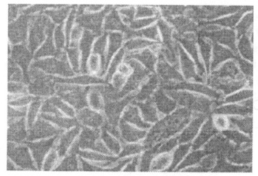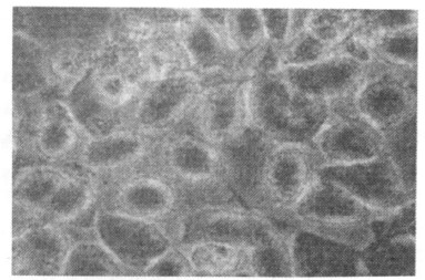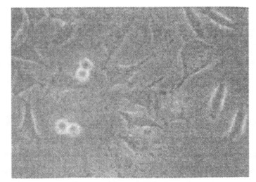 图 3 与HBV DNA阳性血清共同培养的Bewo细胞(400 ×) |