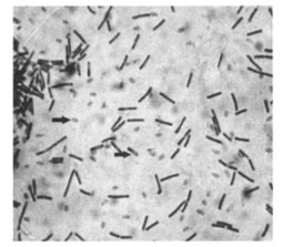 注:→示芽胞 图 1 枯草芽胞杆菌细菌型芽胞染色结果(1000×) |
