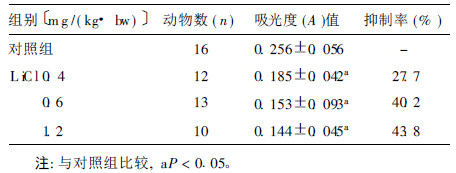 1.2 实验动物分组昆明种小鼠(江苏大学动物中心) 80 只,体重20~ 22 g,雌雄各半,随机分为4个组,每组20 只。 其中3组每天给予L iC l 014,01 6,112 mg / ( kg· bw ) 连续灌胃 20 d,另1组不作处理为对照组。