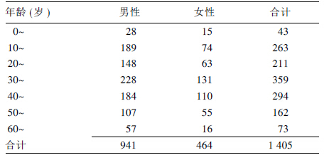 | 表 1 2001-2008年江西省钩体病发病年龄性别分布 |