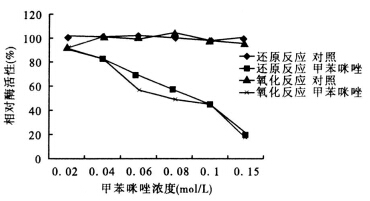 ![]() | 图 3 甲苯咪唑对重组Ta.LDH催化还原反应以及氧化反应的影响 |