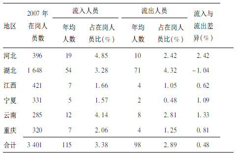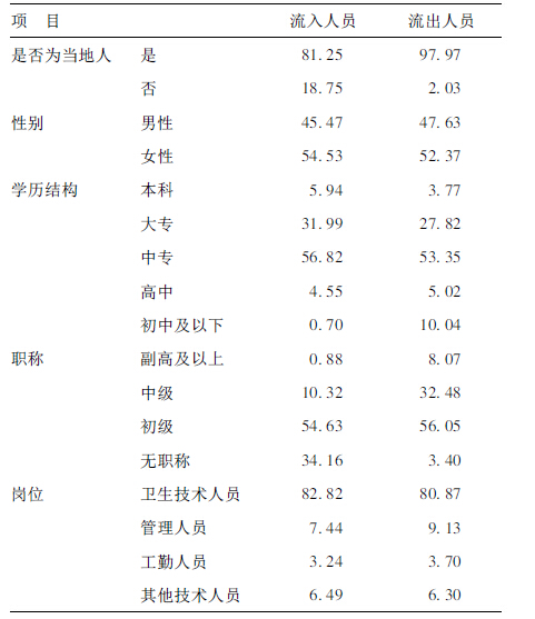 1.2 方法调查121家卫生院2002-2006年所有人员流动情况。内容包括人员的性别、年龄、学历、职称、流入流出原因等。由调查卫生院负责人事的人员填写。