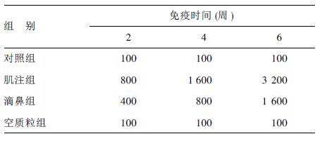 2 结 果 2.1 IgG抗体滴度比较(表 1)| 表 1 3次免疫后小鼠血清中IgG抗体平均几何滴度(GMRT) |