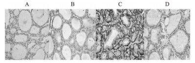 ![]() | 注: A: 对照组; B: NI组; C: LI组; D: HI组。 图 2 各组大鼠肾皮质NIS分布与表达 (400×) |