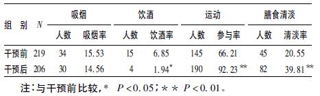 表 1 219 例高血压患者随访干预前后行为变化情况( %)