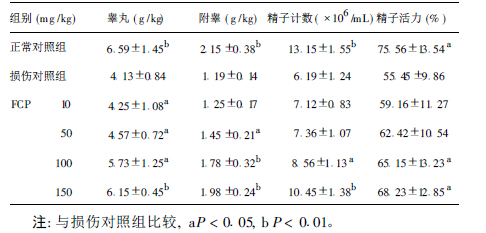 | 表 1 FCP 对高温损伤大鼠生殖腺、精子数量和精子活力的影响 ( x±s ,n = 6 ) |