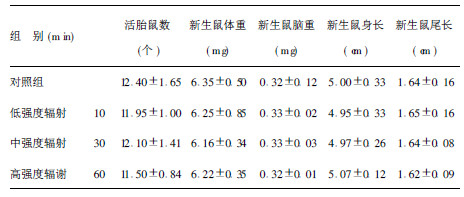 肉眼观察新生鼠无畸形,一般生长发育状况良好,各组活胎鼠数、新生鼠平均体重、脑重、身长、尾长之间的差异均无统计学意义。