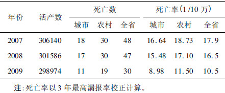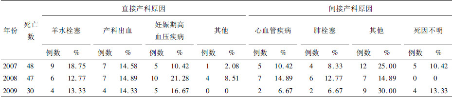 2 结果 2.1 孕产妇死亡率(表 1)| 表 1 辽宁省2007—2009 年孕产妇死亡情况 |