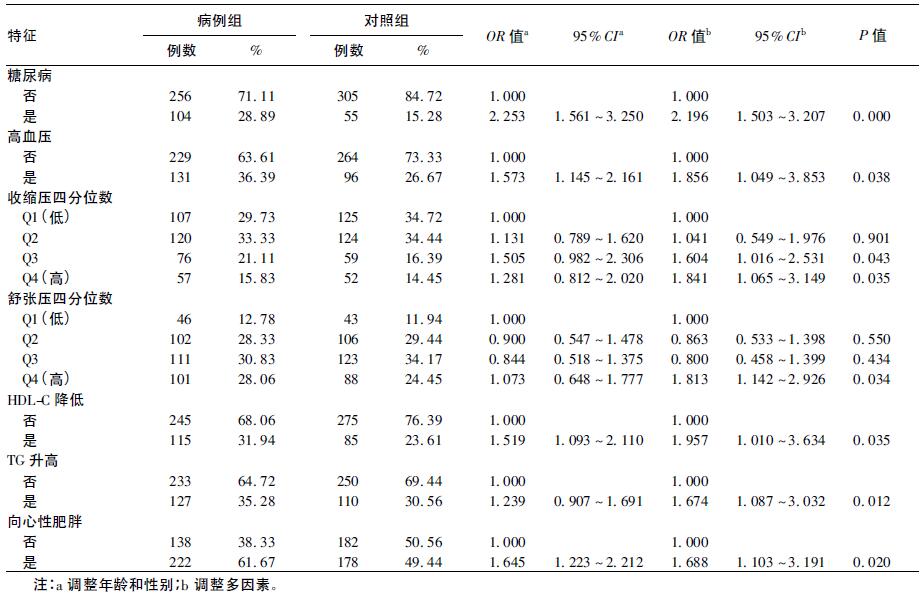 | 表 1 病例组和对照组代谢综合征单一组分与ARC 关系 |