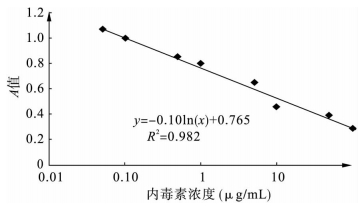 2.2 内毒素多克隆抗体检测大肠杆菌精制内毒素(图 2)![]() | 图 2 兔多克隆抗体检测大肠杆菌内毒素 icELISA 结果 |