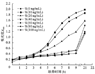 ![]() | 图 5 Nisin浓度对NZ3900/pNZ8100-hspA影响 |