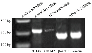 ![]() | 图 1 RT-PCR鉴定转染RNAi载体后CD147 mRNA表达 |