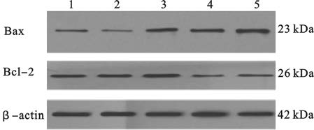 图 1 DHA对C6细胞Bax和Bcl-2蛋白表达影响 |