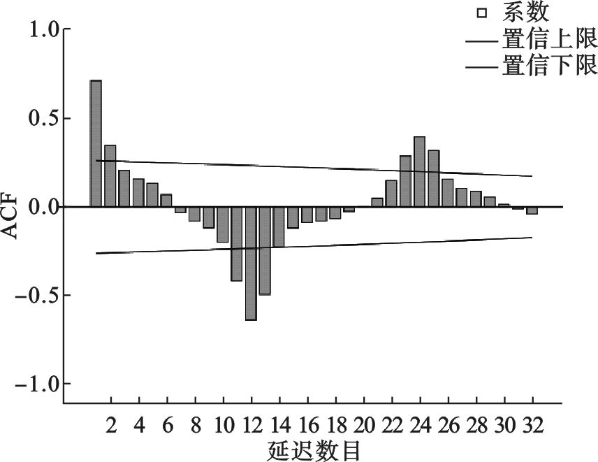 图 3 湖南省2008—2013年手足口病月发病率季节性差分ACF图 |
