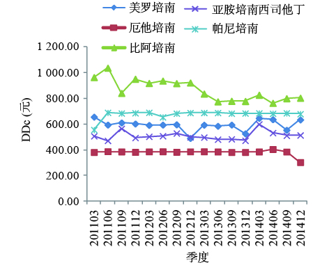 图 4 不同种类碳青霉烯类抗菌药物DDc(元)变化情况 |