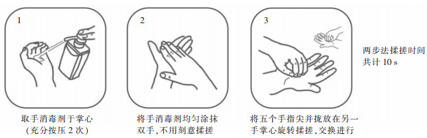 | 图 2 两步法卫生手消毒的揉搓步骤 Figure 2 Two-step hygienic hand disinfection rubbing method |