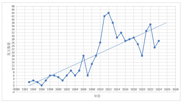图 1 1992—2024年中国海洋环境保护法研究年度发文量变化趋势 |