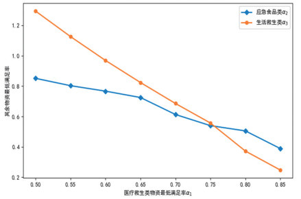 图 5 三种物资最低需求满足率的相关影响分析 |