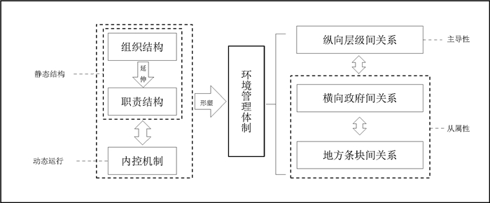 按照不同的权威进路,可将环境管理体制的条块结构分解为三个子结构,分别对应三对基本的条块关系。即:一是纵向层级间关系,包括上下级政府间和上下级环保部门间关系;二是横向政府和部门间关系,包括平行的地方政府间关系和政府内部环保部门与其他业务部门间关系;三是地方条块间关系,即一级政府与其所属环保部门间关系。这些不同层次的条块关系主要受以下三个关键要素的影响:一是组织结构,即负有环境保护管理职责的各类政府主体基于机构设置、领导隶属关系而形成的条块结构形态;二是职责结构,即与环境保护管理相关的职权和责任在政府条块结构中的具体配置;三是内控机制,即推动条块间围绕环境保护管理相互结合和协同配合的一系列调控方法、手段与措施。这三个因素在不同条块关系场域的具体组合决定了环境管理体制在不同维度的运行方式和效能。