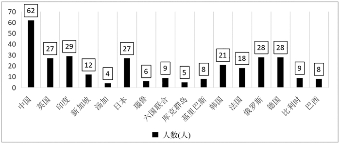 在技术能力提升的支撑下,中国深海勘探权益实现了从“单一资源”向“多资源类型”的战略拓展。2011年至2019年,中国通过中国大洋协会、中国五矿集团、北京先驱高技术开发公司,陆续获得了多金属硫化物、富钴结壳勘探合同,以及两份多金属结核勘探合同,成为全球唯一拥有“三种深海矿产资源、五块勘探合同区”的国家。这一权益布局不仅服务于资源战略储备,更彰显了中国在深海治理中的参与能力。自2014年起,作为承包者的中国积极为发展中国家提供能力建设支持,累计培训80余人次,⑰且培训方式以来华或海上技术培训为主,以线上理论培训为辅,培训规模在各国承包者中位居首位(图 1)。
